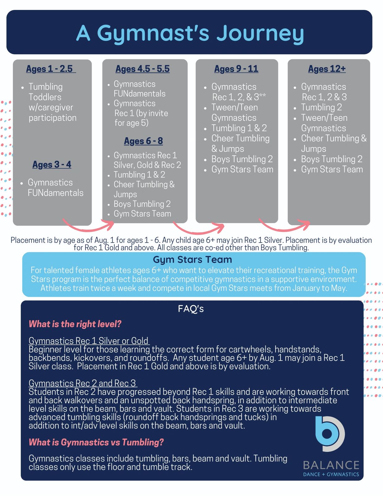 Check out the Gymnast's Journey + Dancer's Journey below and then call us 404-736-3123. We'd love to help you find the perfect fit.